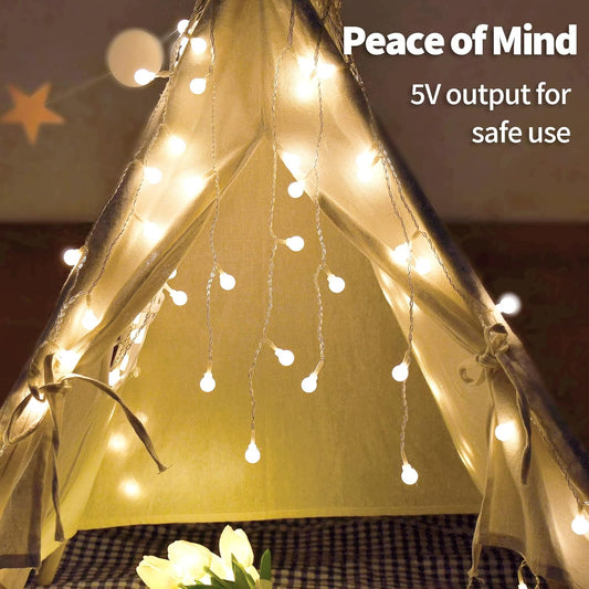 YOLIGHT White Ball Fairy Curtain Lights USB/Battery Powered