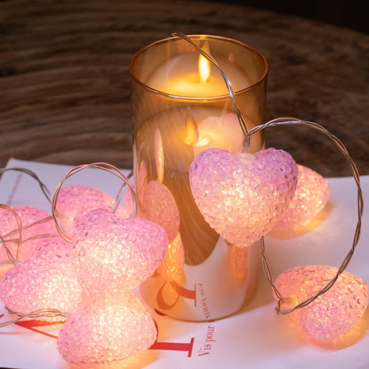 Pink Heart String Lights Valentine's Day Decoration Lights Battery Operated with Timer