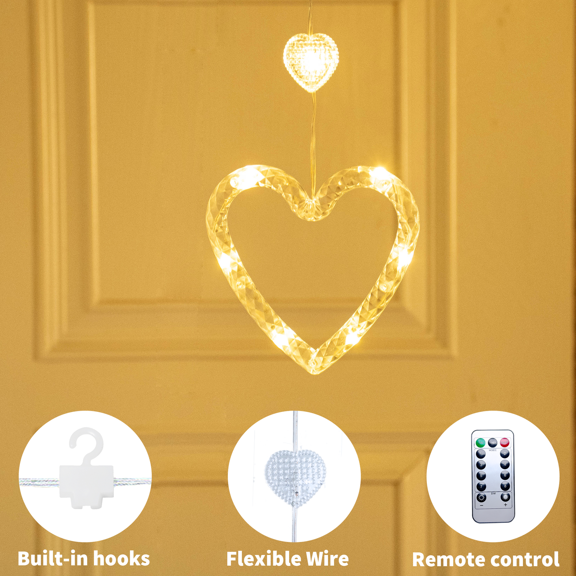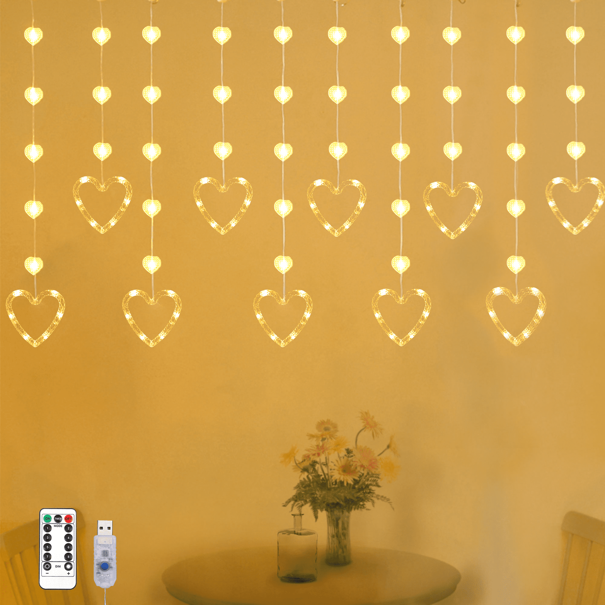 Love is in the air, and so should be your home decor! Elevate your Valentine's Day Decoration with our heart curtain lights. With adorable hearts adorned with LED lights, these lights are not only easy to hang up but also add a touch of romance and aesthetic charm to any room. Powered by USB and equipped with a handy remote, our heart curtain lights are not only convenient but also safe to use. So go ahead, create a romantic atmosphere and show off your love with our heart curtain lights - the ultimate aesthetic decor for any occasion!
