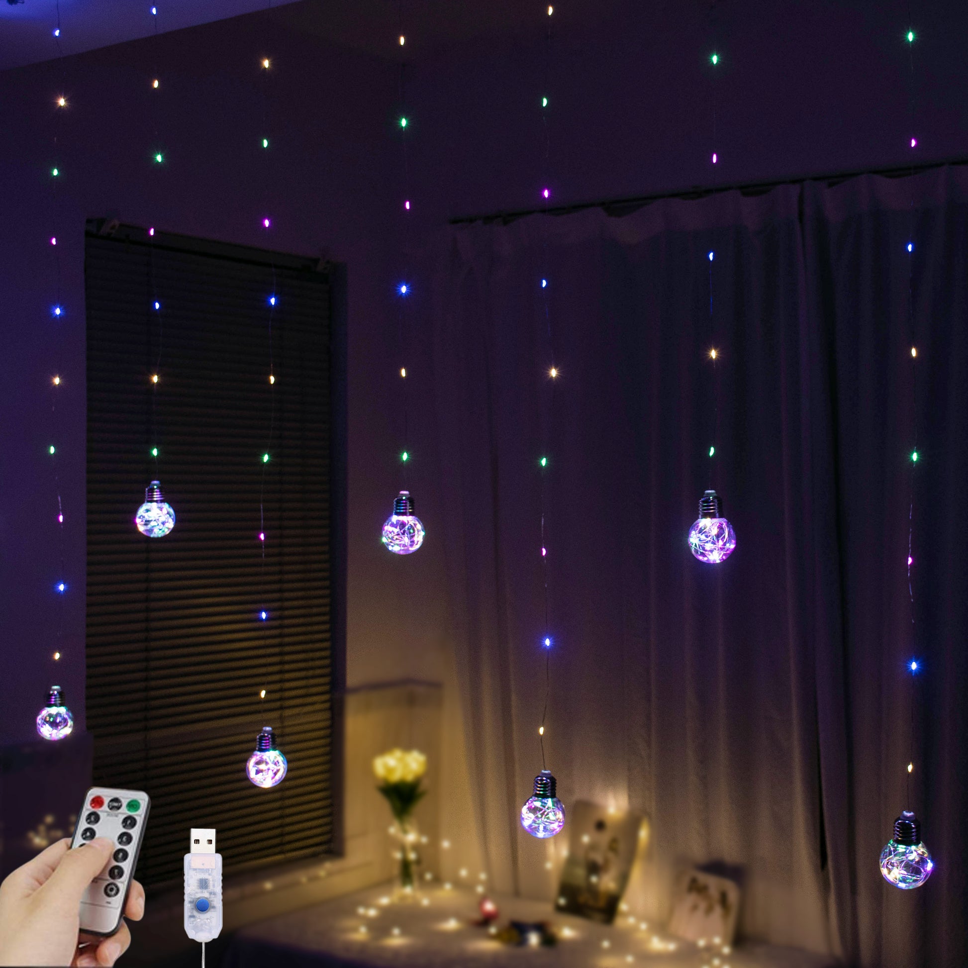 - Extremely lightweight, with built in hooks, the ball curtain lights is easy to be hung virtually anywhere. Easily slides along the curtains or backdrop, create walls of cascading light with little effort.