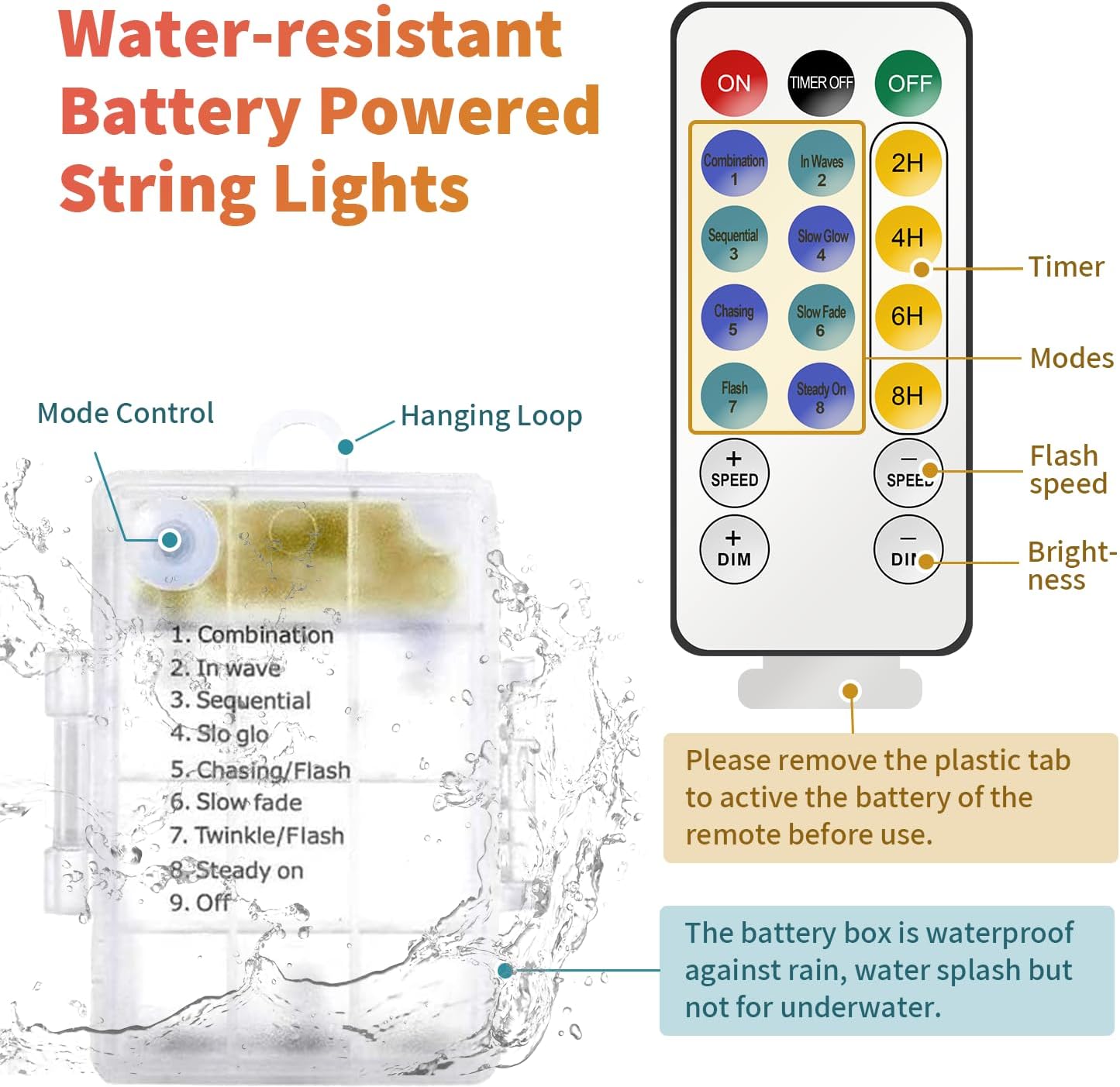 🍁 Handy Remote & Timer - The handy remote control allows you to adjust the brightness, choose lighting modes, and set a timer to automatically turn off the autumn lights. It offers 8 lighting modes including static and twinkle and add a touch of seasonal charm to your autumn decorations